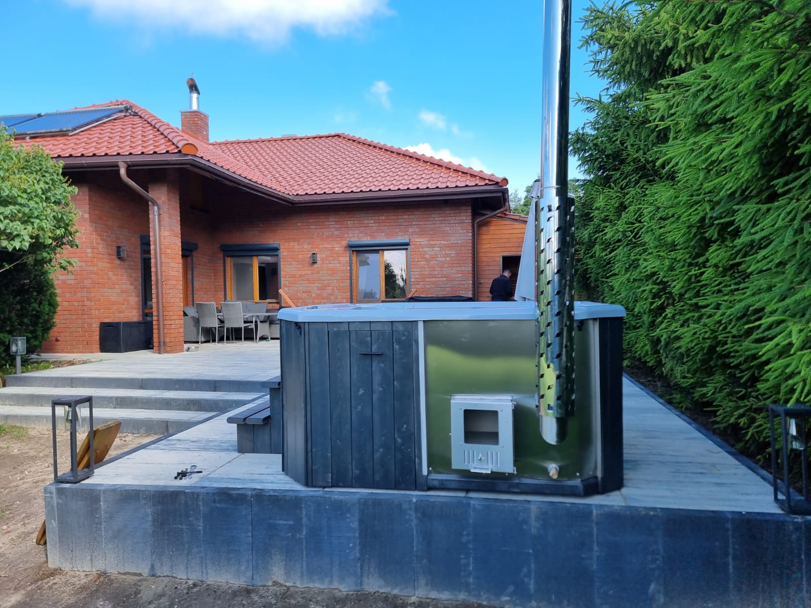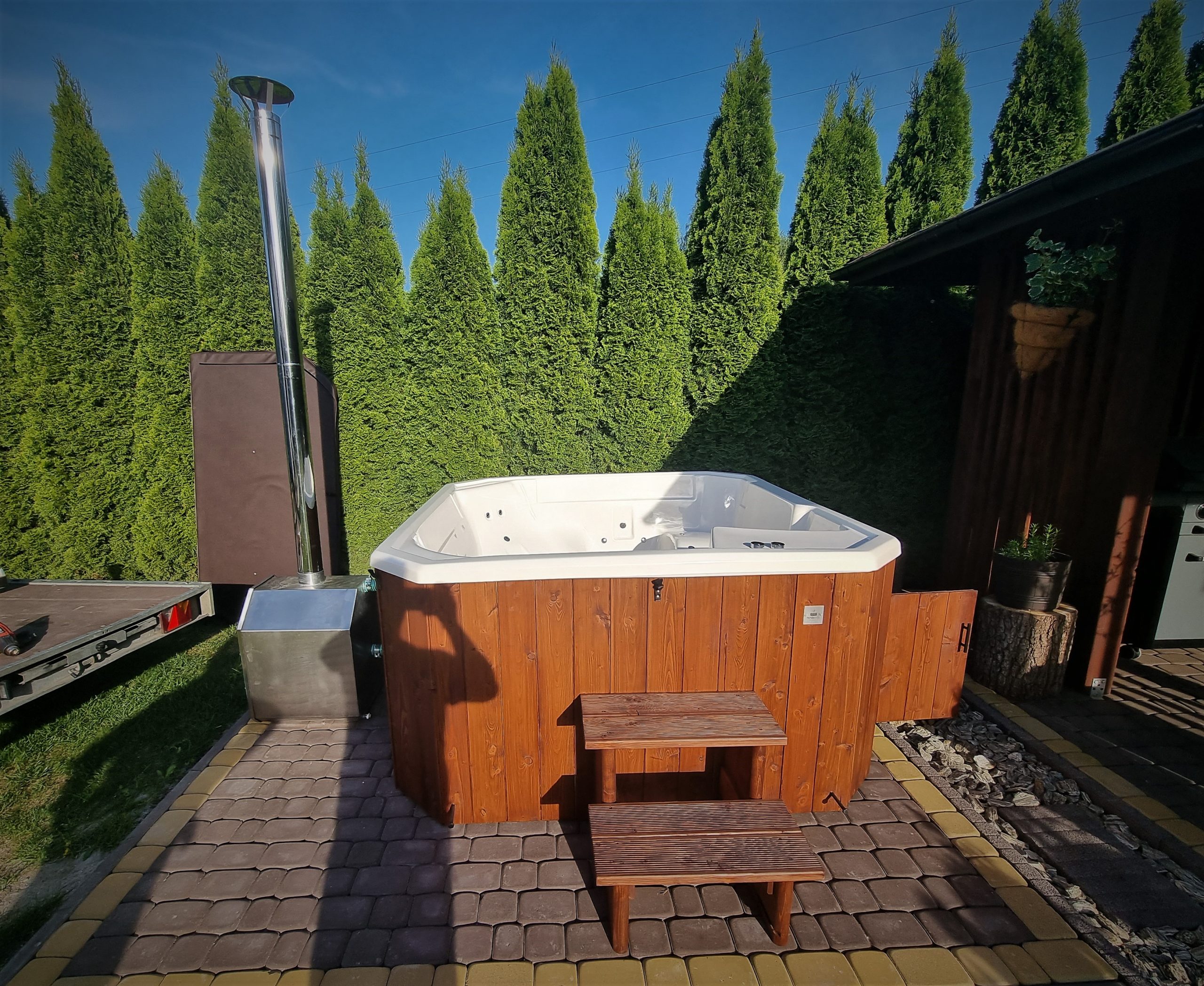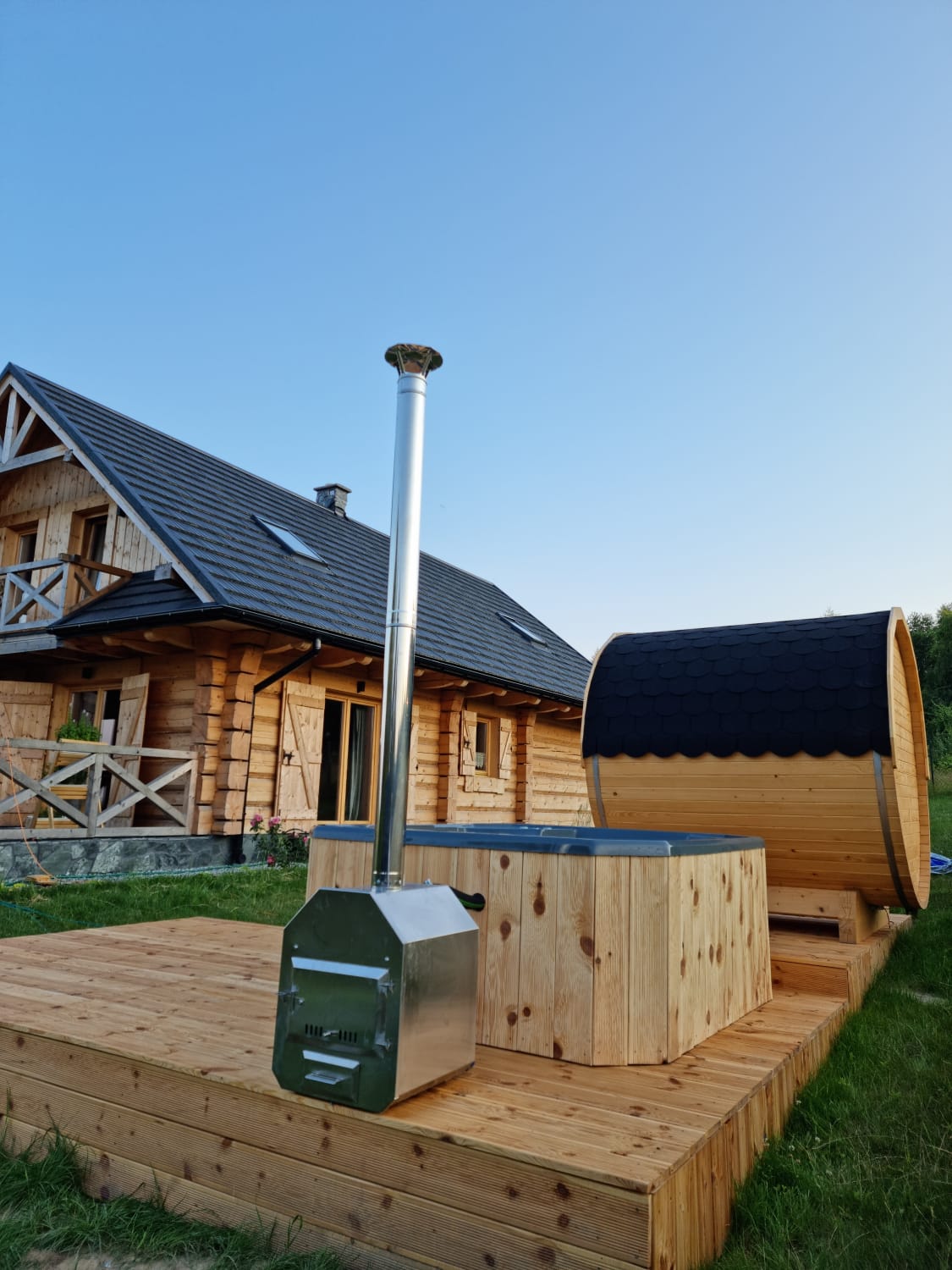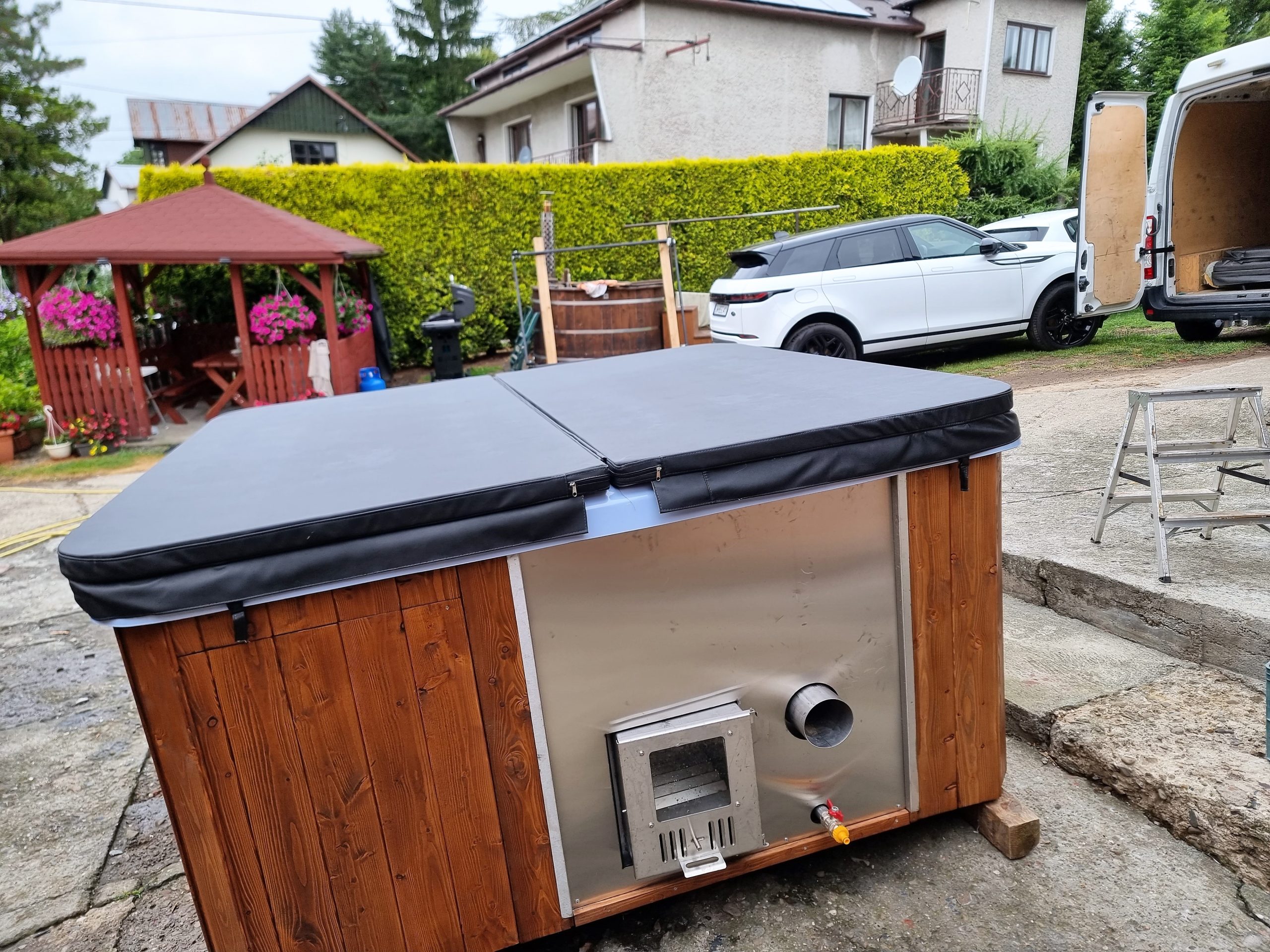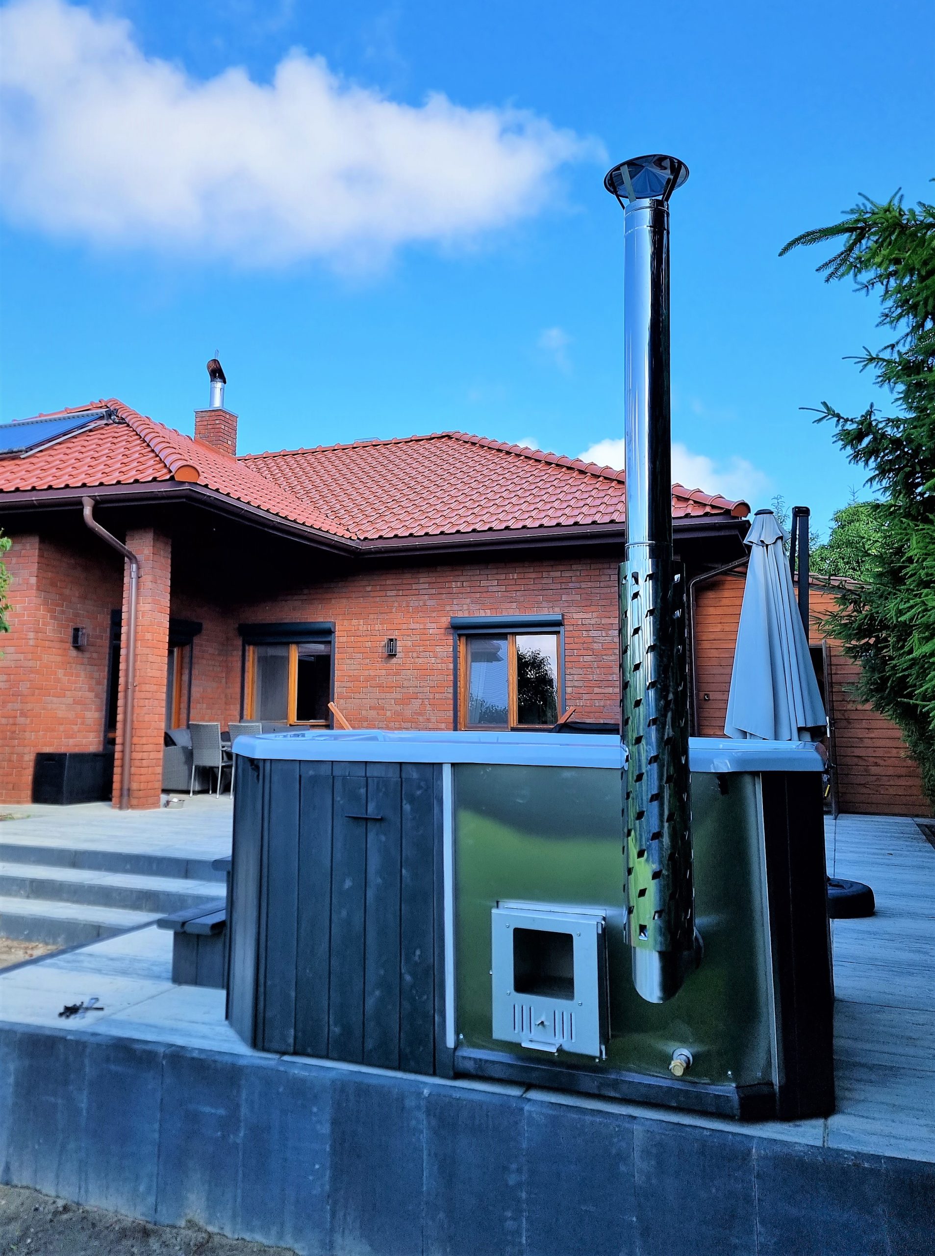 - piec na drewno zewnętrzny lub zintegrowany