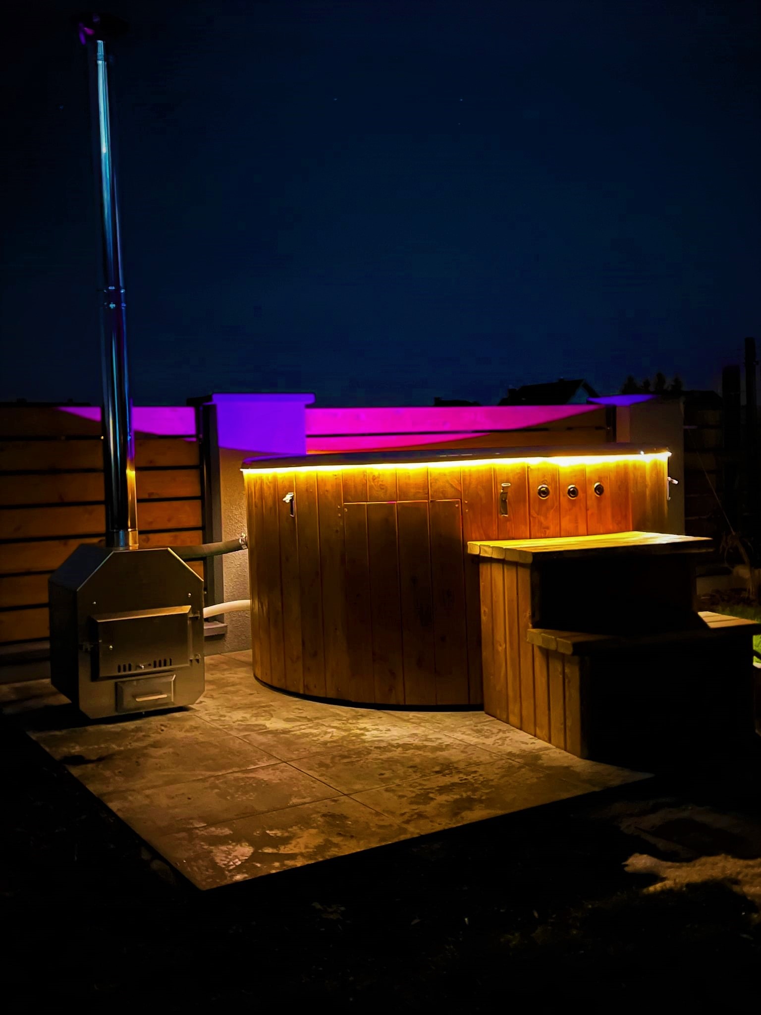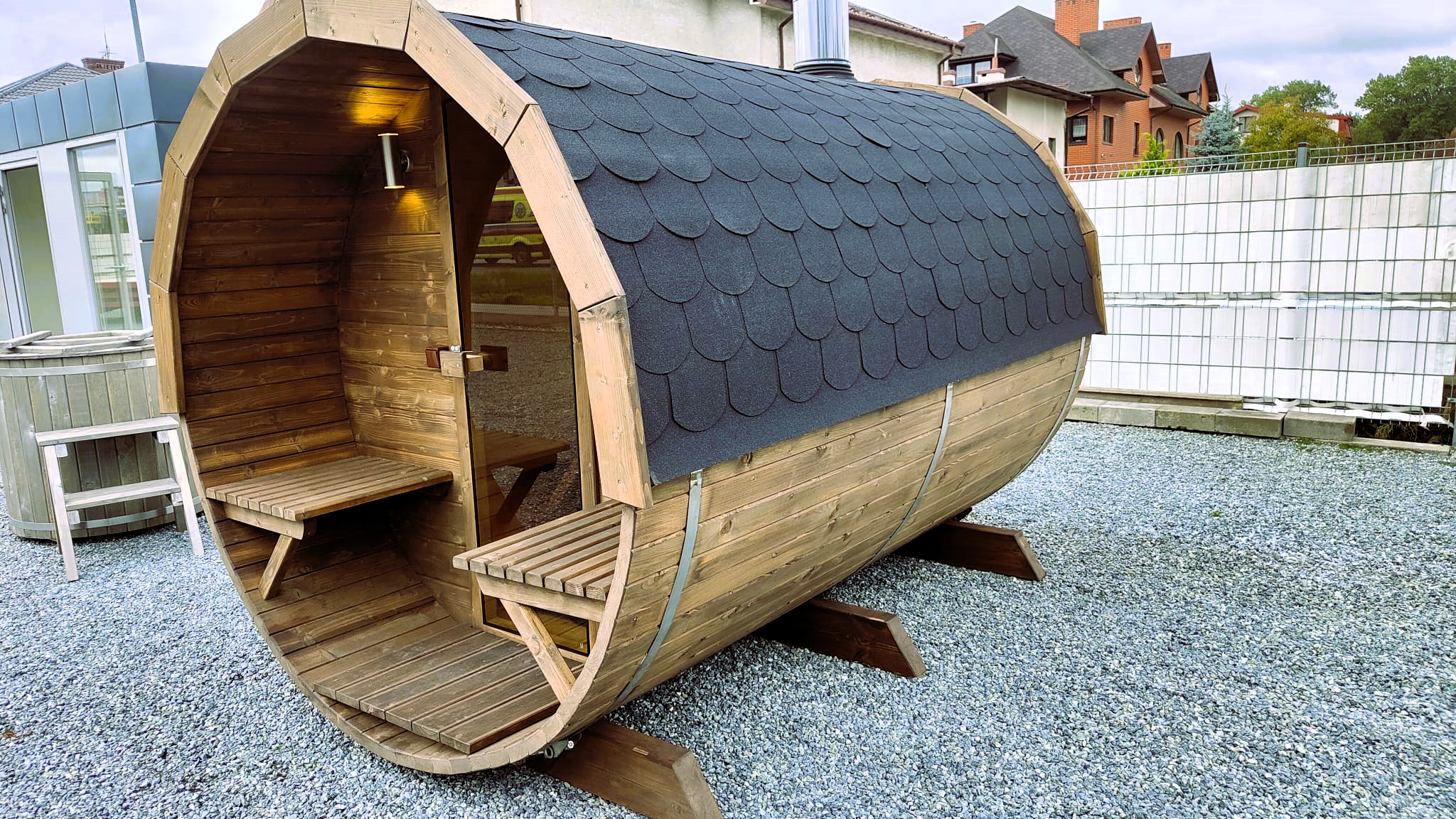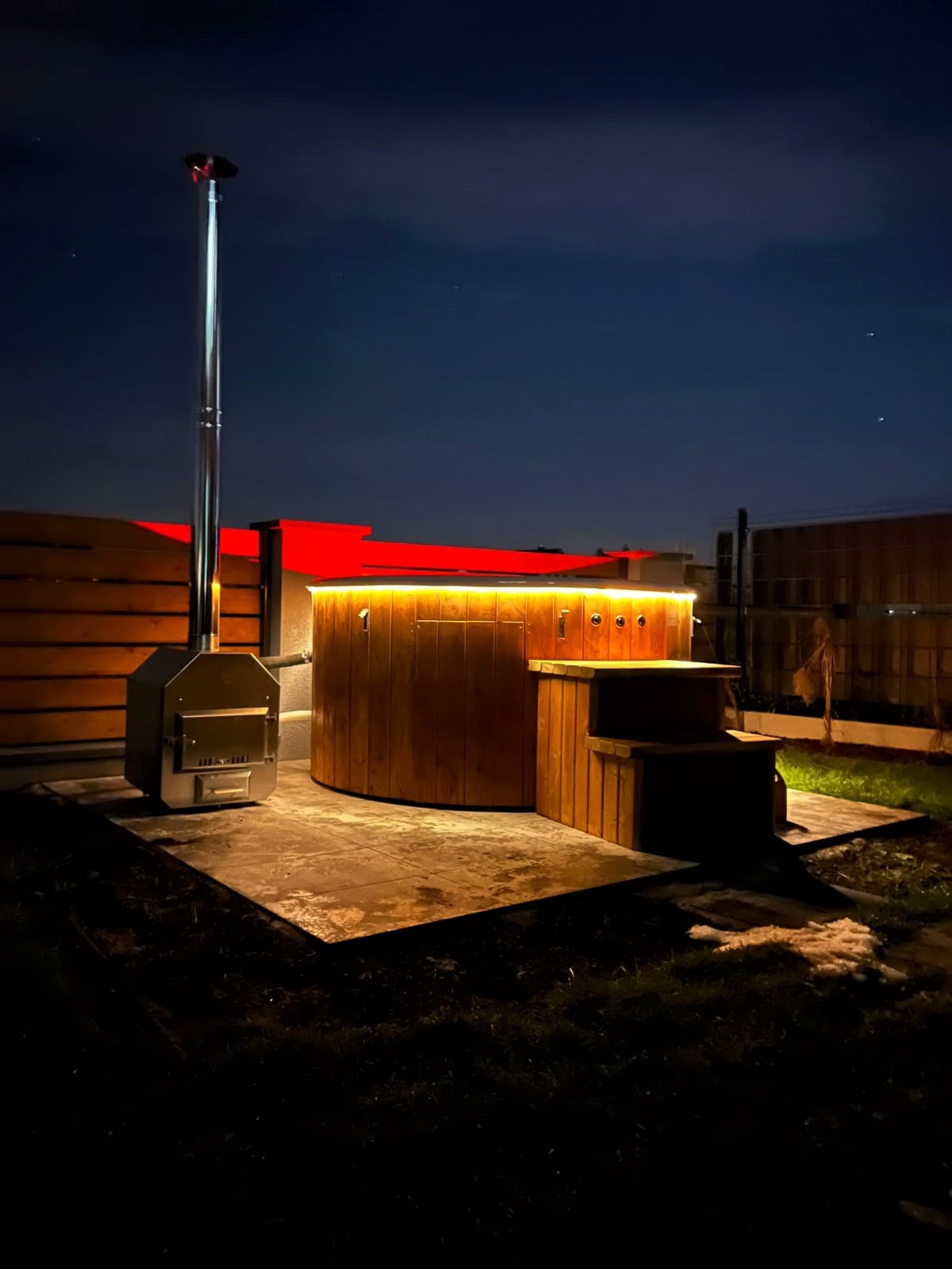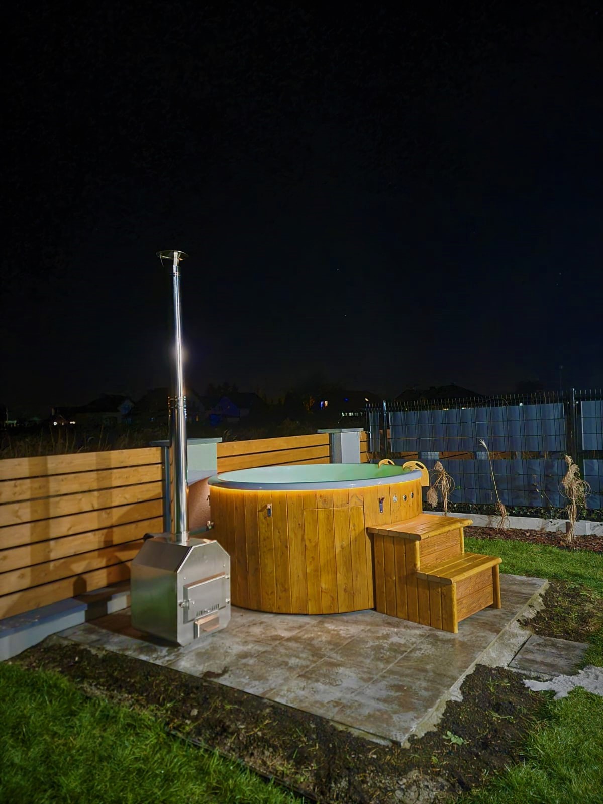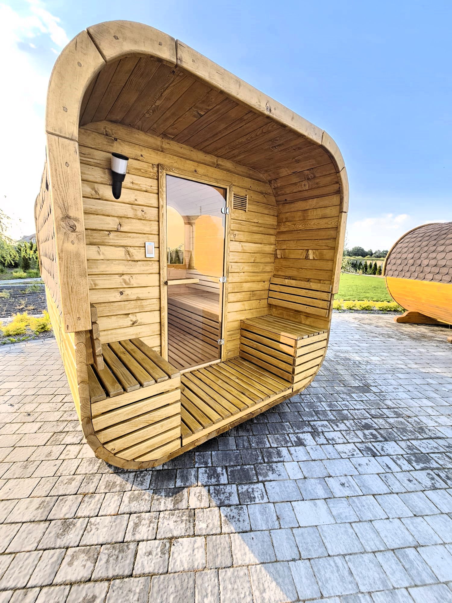 - piec na drewno zewnętrzny lub zintegrowany